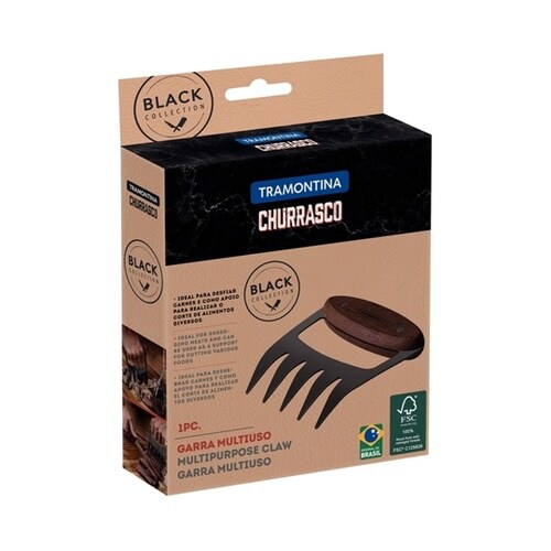 黒い刃と、木のハンドルが特徴のシュラスコブラックシリーズ。生肉、ロースト肉、ステーキ肉など様々な肉をカットするために開発され、先端が湾曲した硬い刃は黒く焼いたステンレス鋼で作られています。 |