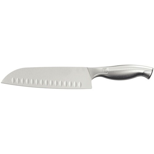 手に馴染みやすいオールステンレスナイフシリーズ。可愛らしく手になじみやすい曲線デザインのハンドル。一体成型で汚れが溜まりにくく衛生的です。ハンドル部分にはさりげないワンポイントTデザイン。 |