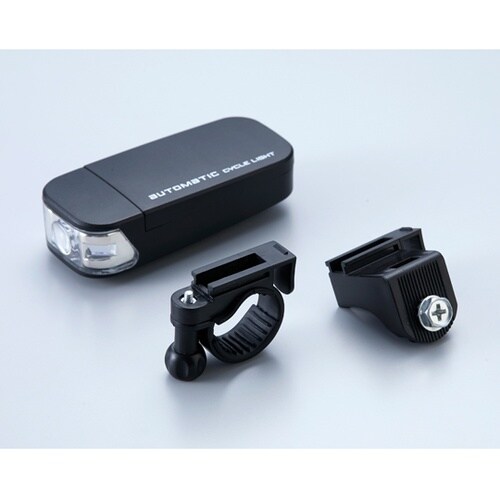 暗い時に振動をキャッチすると、自動的に点灯・点滅する節電&利便性アップの高機能サイクルライトです。ハンドルホルダーとダイナモ取り付け部パーツの2種を付属しています。 |