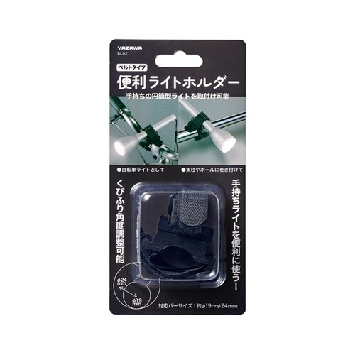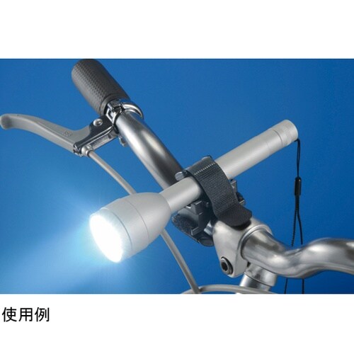 面ファスナー(マジックテープ)式の自転車用ライトホルダーです。お手持ちの円筒形ライトが自転車用ライトになります。取り付けたライトは360度回転が可能です。 |