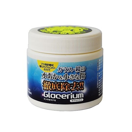 ガラセリウムの成分である酸化セリウムがガラス表面と科学反応を起こし表面のデコボコを除去。ガラスの水垢やキズが取れる。 |