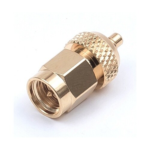 MMCX型プラグとSMAプラグを有する変換コネクタです。異なる型のコネクタをジョイントするために使用されます。本体は黄銅に金メッキになります。 |