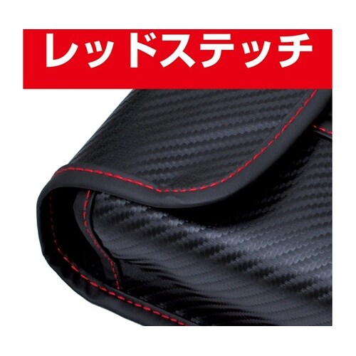 カーボン柄の生地を縫製したティシュボックスケース車内で置き場所に困るティシュボックスを収納してご使用できます。取り付けベルトと固定ステーにより4種類の取り付け方法で、お好きな場所へ装着できます。 |