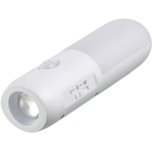 懐中電灯としてもルームライトとしても使用できる多機能ライトです。消灯時や停電時に周囲が暗くなると、自動で点灯する「明暗センサー」と、人の動きを感知して光る「人感センサー」を搭載しています。 |
