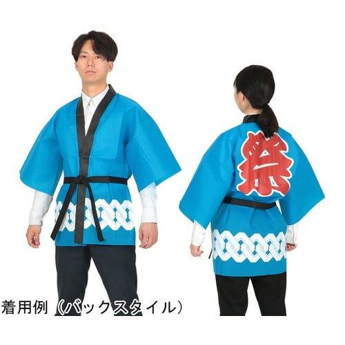 定番の吉原つなぎ柄をデザインしたハッピです。背中には迫力満点の「祭」文字プリントが施され、お祭りはもちろん、企業イベントや催し物にぴったりのアイテムです。 |