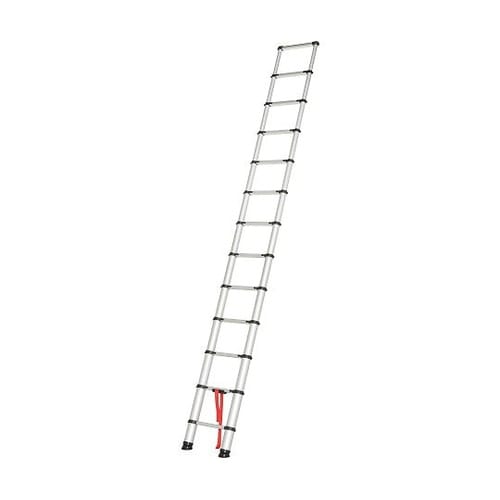 最大4.2mの伸縮式はしご収納時は片手で抱えられる長さになります。乗用車のトランクにもすっぽり収まります。色つきの安全ロック付きで、1段1段伸縮・固定が可能です。 |