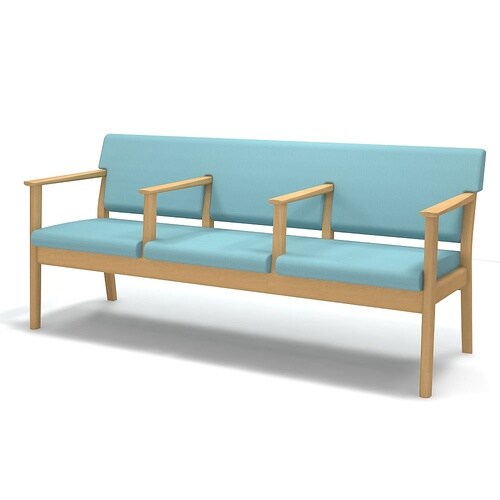 サイズ:W1734×D644×H778mm | 材質:座面・ウレタン、脚部・ブナ(ライトブラウン) | 重量:32kg | 単位:1台