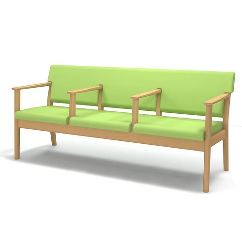 サイズ:W1734×D644×H778mm | 材質:座面・ウレタン、脚部・ブナ(ライトブラウン) | 重量:32kg | 単位:1台