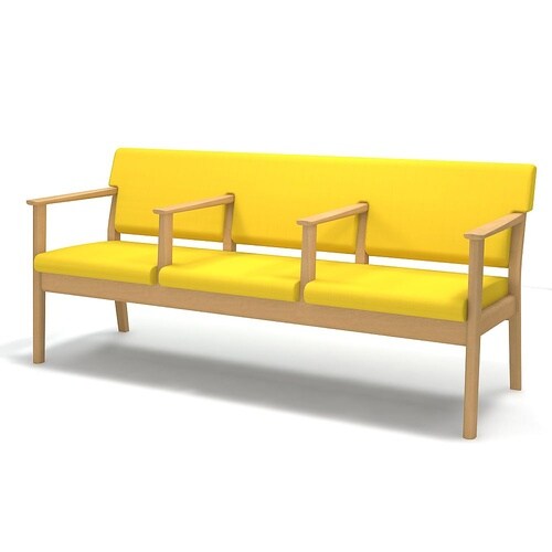 サイズ:W1734×D644×H778mm | 材質:座面・ウレタン、脚部・ブナ(ライトブラウン) | 重量:32kg | 単位:1台