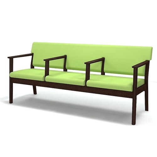 ロビー(待合スペース)使用できるソファ。背面と座面の間を開けることで清掃が容易に行えます。