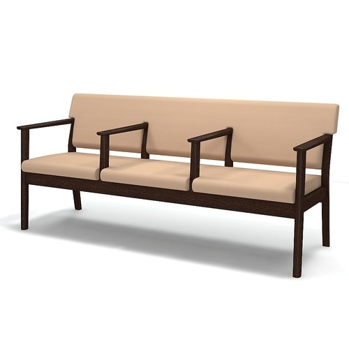 ロビー(待合スペース)使用できるソファ。背面と座面の間を開けることで清掃が容易に行えます。