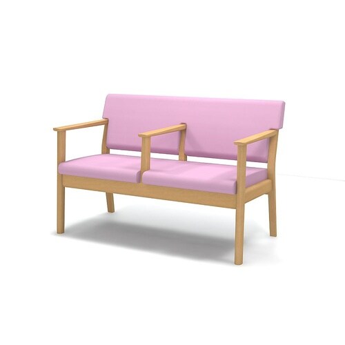 ロビー(待合スペース)使用できるソファ。背面と座面の間を開けることで清掃が容易に行えます。