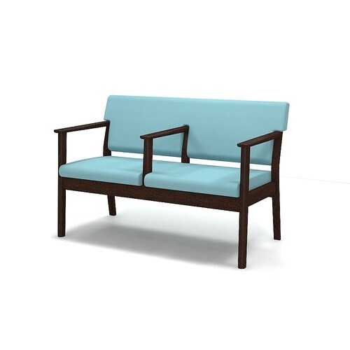 ロビー(待合スペース)使用できるソファ。背面と座面の間を開けることで清掃が容易に行えます。