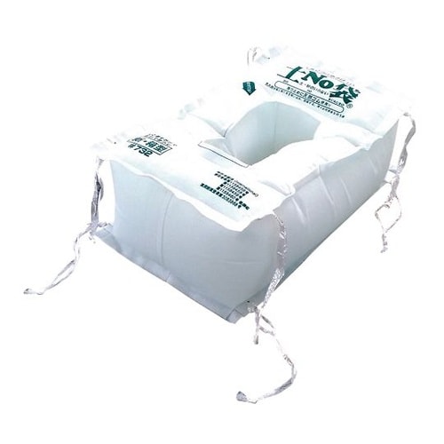 土不要!水だけで膨らむ緊急用土のう袋膨らませる時は水に浸すだけで、約3分間で膨張します。新箱型は中心にクイを打ち、土を入れ、紐で連結し補強も可能。3段に積んでも安定するすべり止め付き。