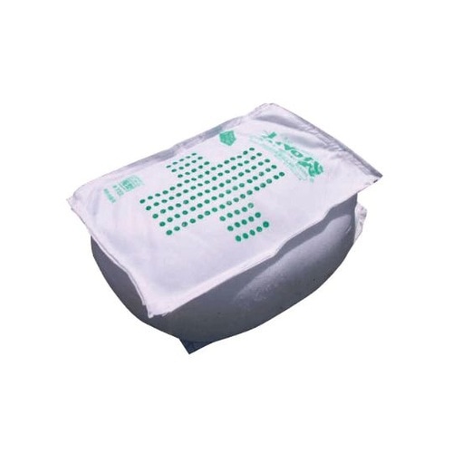 土不要!水だけで膨らむ緊急用土のう袋膨らませる時は水に浸すだけで、約3分間で膨張します。新箱型は中心にクイを打ち、土を入れ、紐で連結し補強も可能。3段に積んでも安定するすべり止め付き。