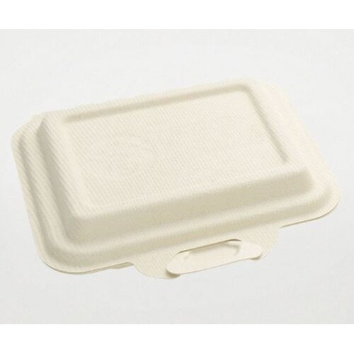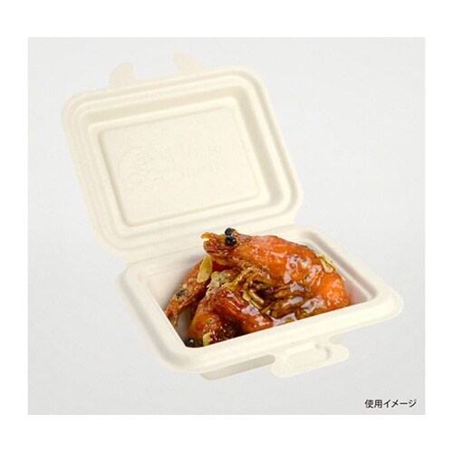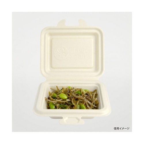 竹とバガス(サトウキビの搾りかす)の混合素材からできた、植物由来で100%生分解性の業務用・使い捨てテイクアウトランチボックス。容器についてツメによってしっかりと蓋が閉められます。 |