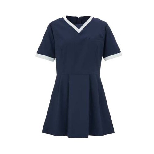 華やかに広がるフレアと、美しいVネック。柔和なカラーに親しみを込めながら、モダンなディテールに心惹かれるタイムレスなデザイン。左胸に携帯・スマートフォン対応ポケット付。 |