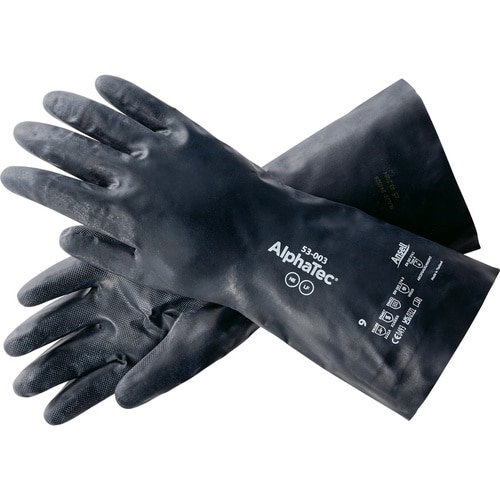 有機溶剤を取扱う作業に適しています。それ以外の物質に対しても、優れた耐透過性能を有しているため、作業現場で複数の物質を取扱う場合も、重ねて手袋をつける必要がなく、手袋の交換の手間を軽減します。 |