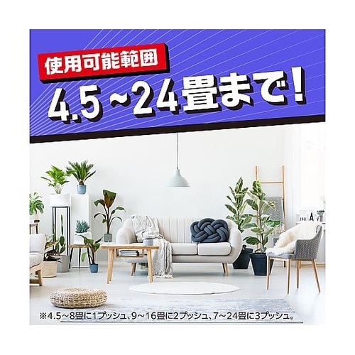お部屋の空間にスプレーするだけで、薬剤がお部屋に瞬時に広がり、24時間蚊を駆除します。ハエは噴射直後のみ駆除します。 |