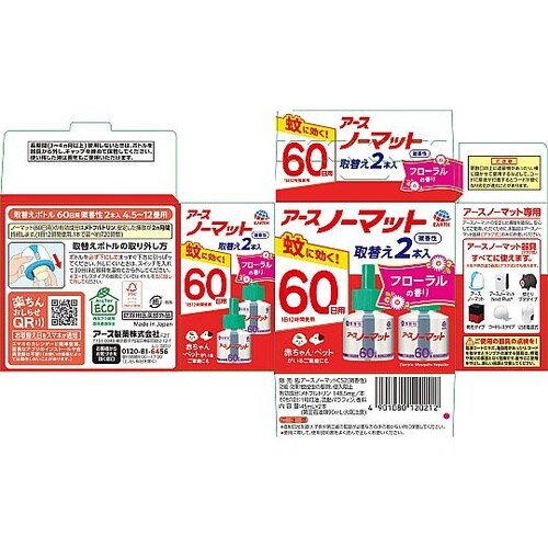 蚊に効く!ノーマット(60日用)の有効成分はメトフルトリン。安定した揮散が2ヵ月間持続します。(1日12時間使用。 |