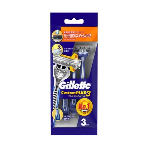 カスタムプラスシリーズから待望の3枚刃登場!肌の凹凸にしっかり密着優しく剃れる進化した潤滑スムーサー(カスタムプラス2EXとの比較)で、圧倒的になめらかな剃り心地を 実現する、使い捨て3枚刃髭剃り。 |