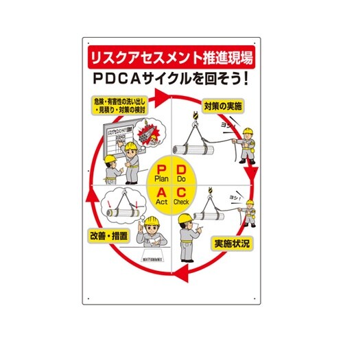 サイズ:900×600×1.2mm厚 | 材質:エコユニボード | 標識:リスクアセスメント推進現場PDCAサイクルを回そう | 単位:1個