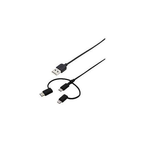 カラー:ブラック | コネクタ形状:USB−Aオス・Type−Cオス+microUSBメス(キャップ)、Lightningオス+microUSBメス(…