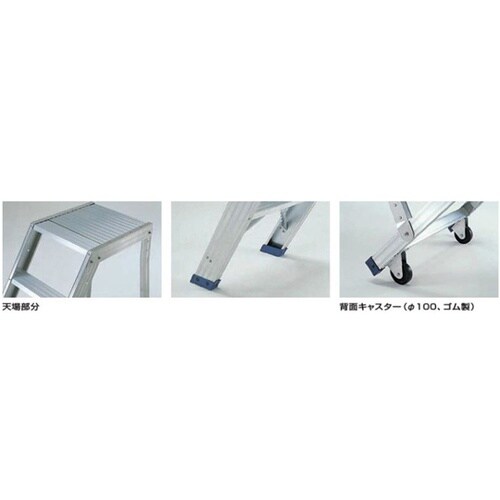 工場・倉庫内での作業に適した作業台幅の広い踏ざん・天場は安定性に優れ、移動は背面キャスター(φ100、ゴム製)でスムーズに行えます。筋交いの変更により安定感を高めました。 |