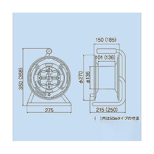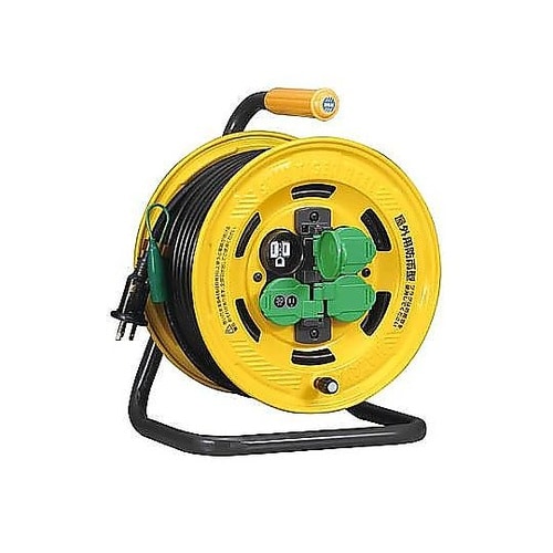 コンセントが4個ついておりコンセントキャップはバネ式で使用していないときは自動で閉まります。漏電遮断ブレーカー付の屋外型100Vコードリール30mタイプです。 |