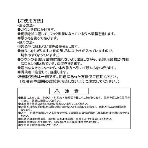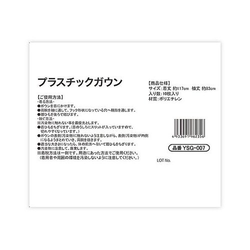 防水性の高いポリエチレン製ガウン。指フックタイプです。 |