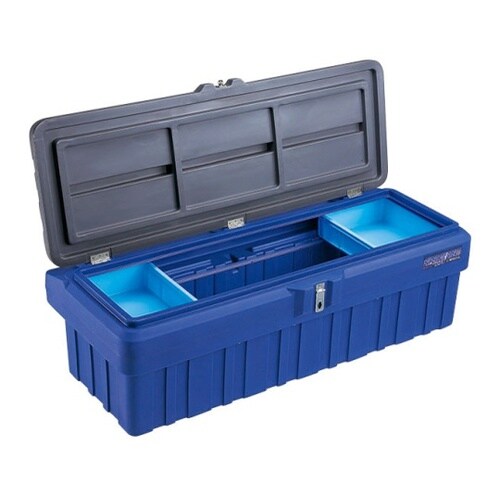 衝撃に強い最強ボディの車載用ボックスです。蝶番、バックルには錆に強いステンレスを使用。オイル、食塩にも腐食しません。完全防雨です。1ー2t車にジャストサイズです。 |
