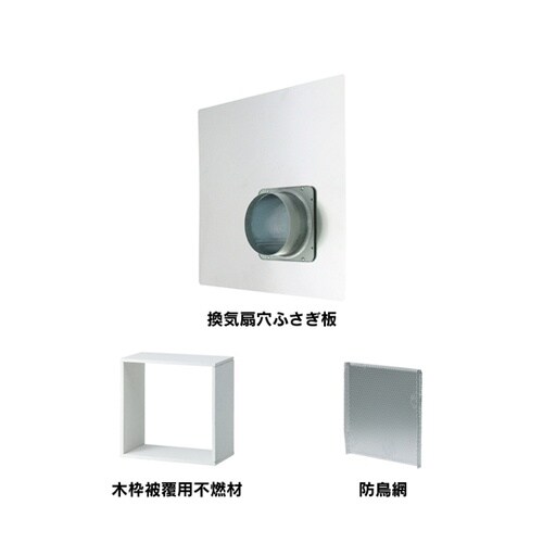 換気扇タイプからシロッコファンタイプへリフォームする場合に必要なパーツをセットしたものです。外壁側からの工事は不要です。 |