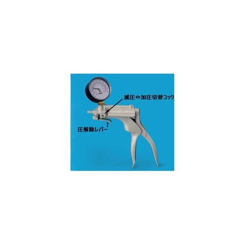 非粘性液用の手動式エアーポンプで減圧(吸引)←→加圧(排出)の切替可能です。ボディはポリ塩化ビニル(PVC)製で内径6mmの肉厚軟質チューブを接続します。 |