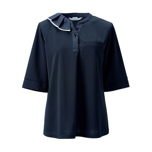 汗じみが気になって、明るい色が着られない…そんな夏の汗じみストレスを緩和してくれる機能「エチケットガード」を搭載したオフィスポロ。すっきりシルエットと長めの着丈はパンツスタイルとも好バランス。 |