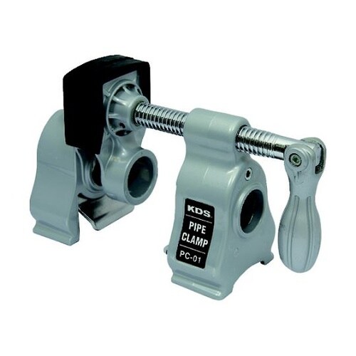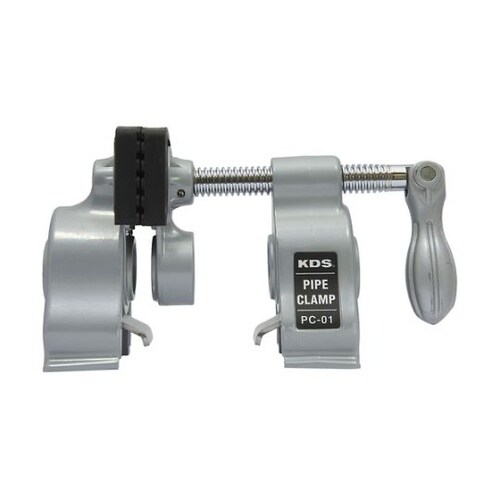 パイプを使用して拡張、締め付けが自由自在な仮止めクランプです。パイプへのねじ切りは不要です。対象物を傷めないゴムパッド付きです。片手で握って締め付けられる可動ハンドル付きです。 |