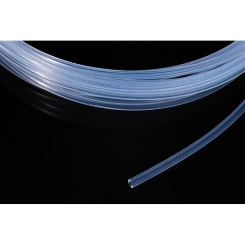 耐熱性が低い以外は細径PTFEチューブとほぼ同じです。半透明でチューブ内の溶液確認もでき、フッ素樹脂チューブの中では紫外線の透過率が最も良い材質です。 |