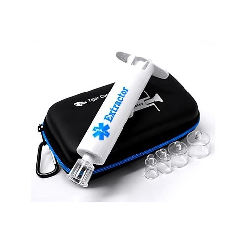 吸引カップ6サイズ付スズメバチ、蚊、ブヨなどの毒虫に刺された、咬まれた際の応急処置にシリンダー(本体)内部を真空にすることで吸引する、強力型。吸引中は手を放しても落ちません。 |