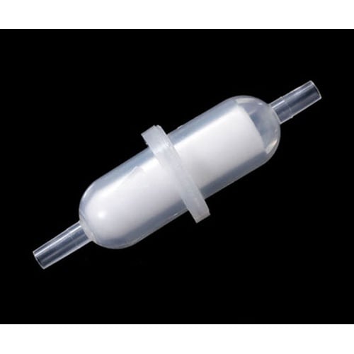 矢印方向へ流れる液体を濾過するポーラスフィルターを内蔵した軟質チューブ用コネクターです。ポリプロピレン(PP)製ホルダーは分解不可。 |