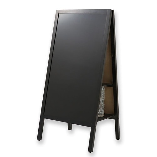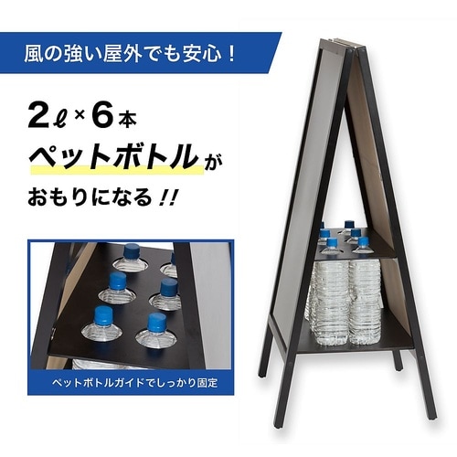 ペットボトルを置いて転倒防止ができる看板です。最大風速15m/sでも倒れません。光沢面にはマーカー、マグネットが使用可、マット面にはチョーク&マーカーが使用可能です。看板、案内板、掲示板、POPに。 |