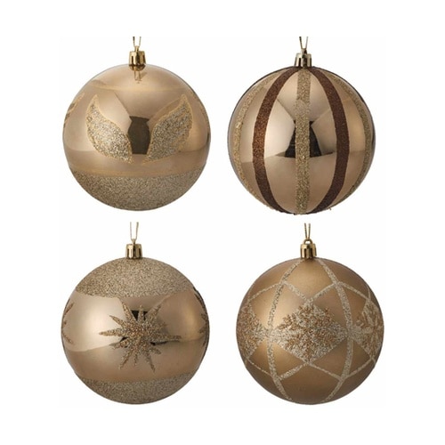 ゴージャスなオーナメントは品の良いツリー装飾に適しています。ボールの模様は4種類のデザインがあり、各3個ずつ計12個がセットになったお得なオーナメントセットです。 |