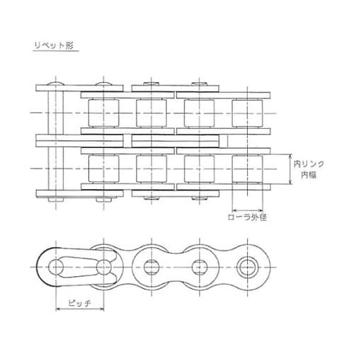 チェーンNo.:40 | ユニットリンク数:240 | ピッチ(mm):12.7 | ローラー外径(mm):7.92 | 内リンク内幅(mm):7.8…