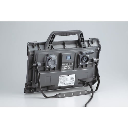 明るさ2段階切り替え式です。2P/2P接地付兼用防雨型コンセント2個付きです。8灯まで連続点灯可能です。 |