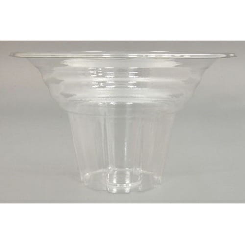 かき氷やフラッペに適した口元が広がったタイプの透明カップ。フルーツなどのトッピングが多めのメニューにおすすめです。本体が透明なのでシロップの色もよく映えます。 |