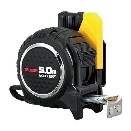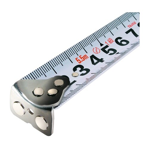 目盛仕様:メートル目盛、JIS1級、両面目盛 | テープ幅:25mm | テープ長さ:5.0m | テープ:剛厚ホワイトテープ | 表示:ヨンゴーゴー…