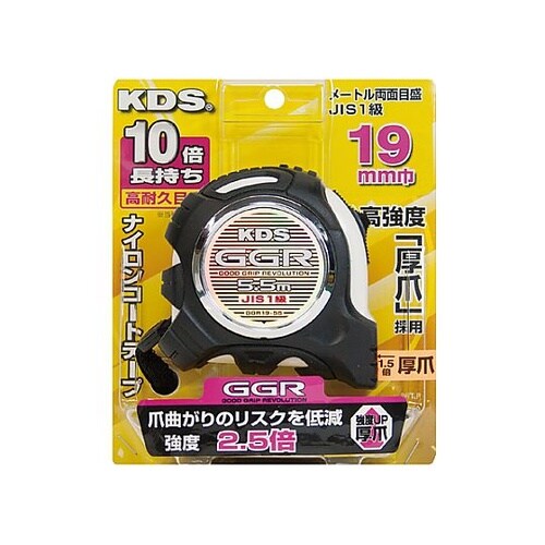 メーカー:ムラテックKDS | 型番:GGR19−55 | 仕様:ベルトクリップ式 | 全長:5.5m | 幅:19mm | 材質:バネ・スチール テ…