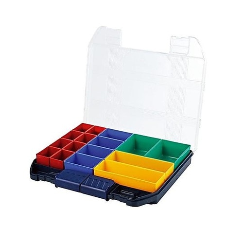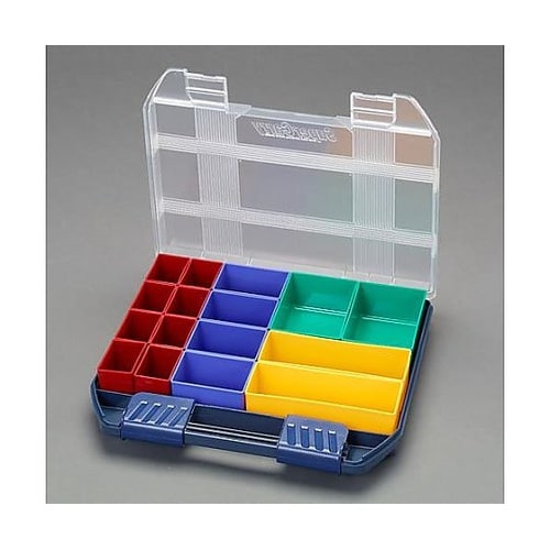 バックルはスーパーロック方式でロックかけ忘れによる中身の飛び出しを防ぎます収納物が取り出しやすい底部アール加工付。 |