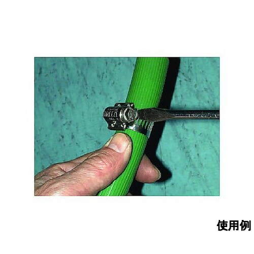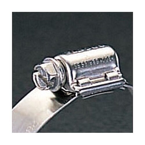 耐腐食性の高いステンレスなので船舶等への使用に適しています。ウォームの歯4枚を持つ六角ネジがバンドの溝をしっかりと固定します。 |