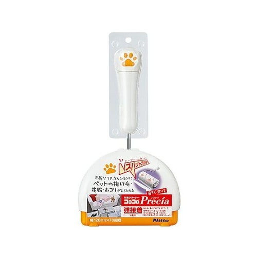 ペットの抜け毛、花粉・ホコリがよくとれる。テープ幅が120mmの小回りがきいて、気づいたゴミをすぐ取れるコロコロです。長い毛が巻きついてもまっすぐ切れるスパットカットを採用しています。 |