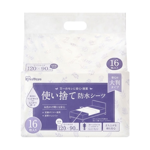 気軽に使える使い捨てタイプの防水シーツです。安心の大判タイプです。吸水力が高く、逆戻りしにくくなっています。吸収体がベッドサイドまでしっかりガードします。シーツ内部は抗菌ポリマーを使用しています。 |