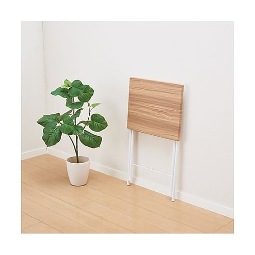 壁に天板をピッタリとつけて使用できます。コンパクトにたためるので、狭い隙間に収納できて場所をとりません。 |